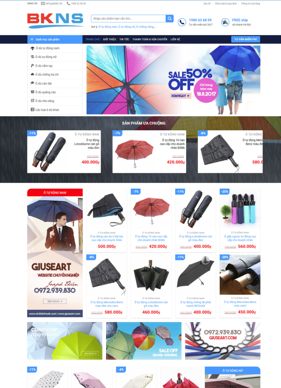 Mẫu website bán các loại ô dù