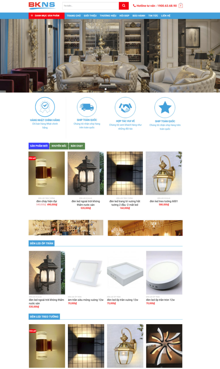 Mẫu website bán đèn led đẹp, chính hãng
