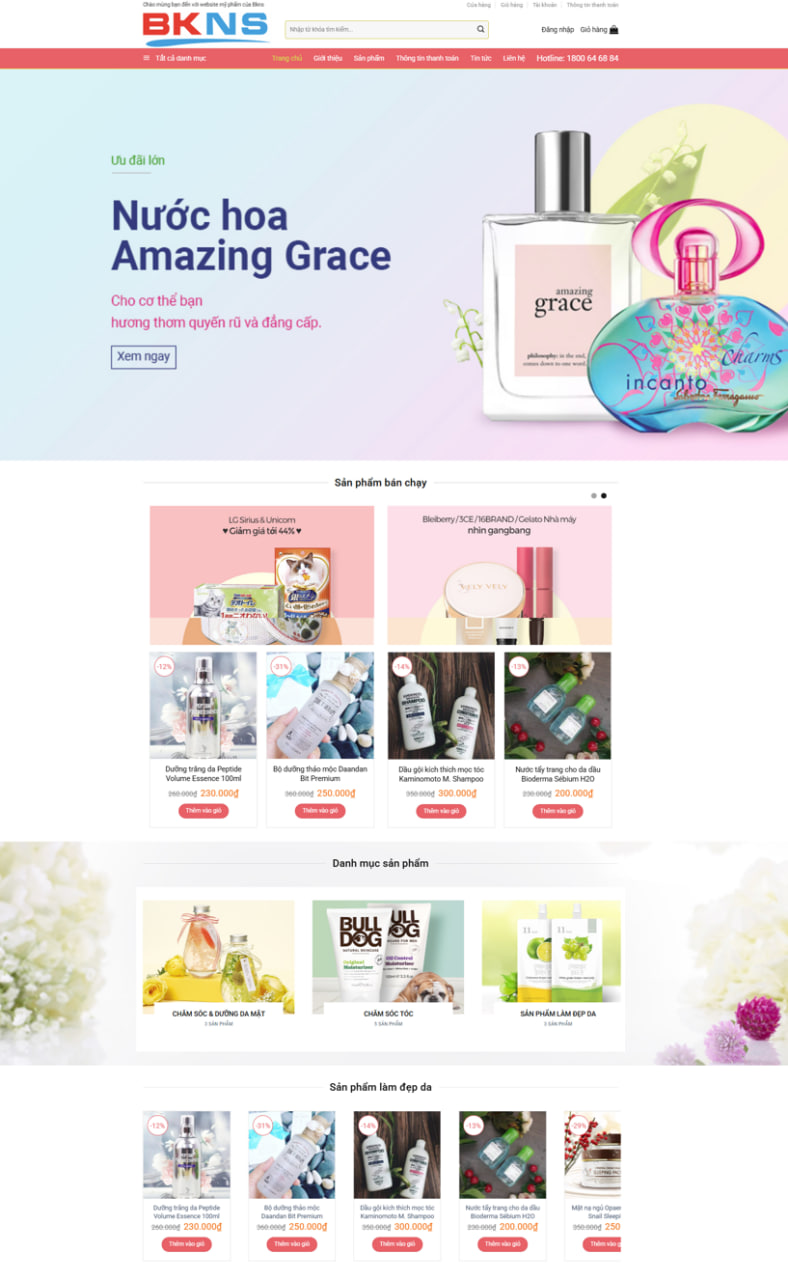 Mẫu website mỹ phẩm chính hãng