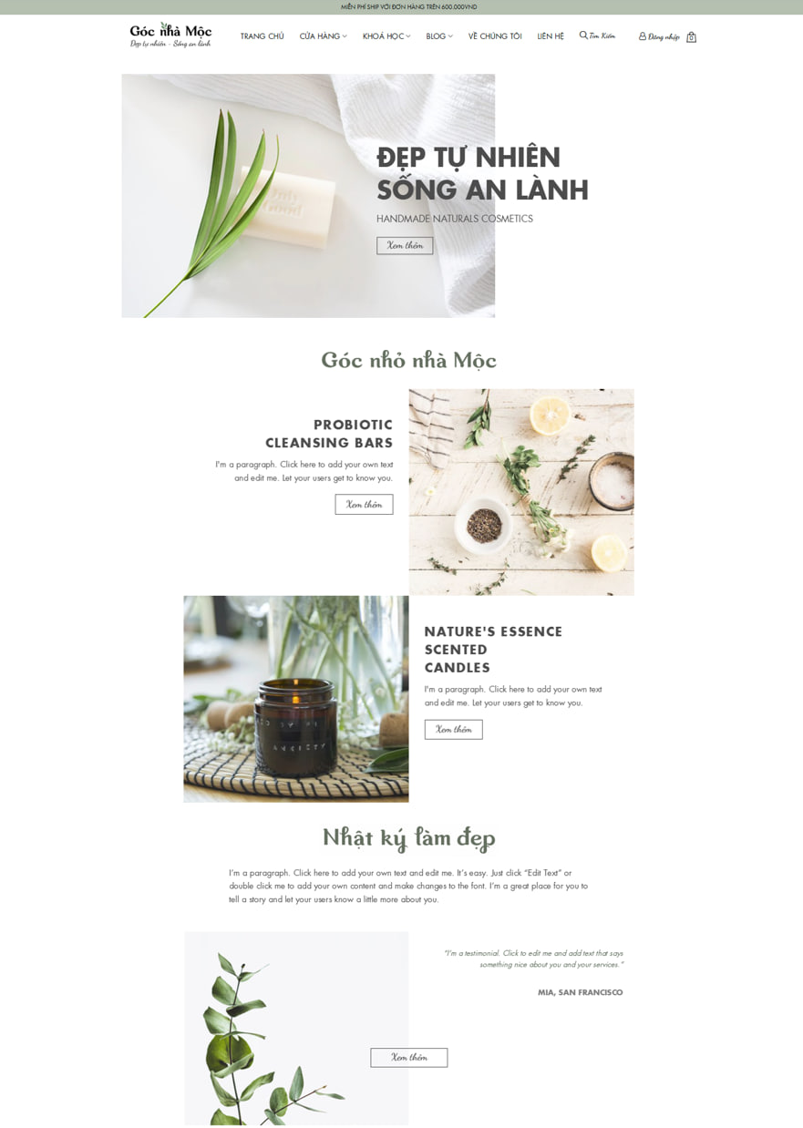 Mẫu website mỹ phầm lành tính