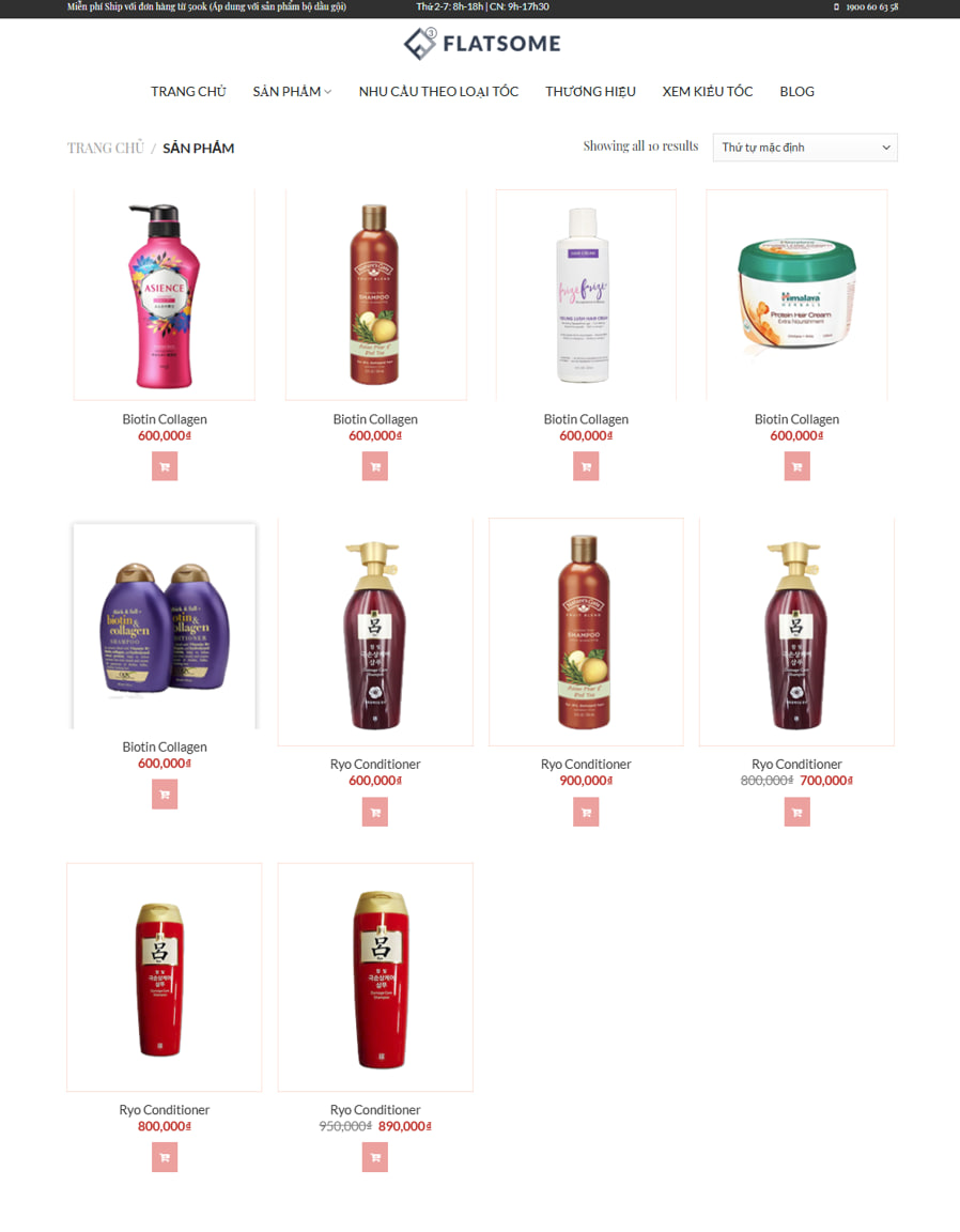 Mẫu website sản phẩm chăm sóc tóc